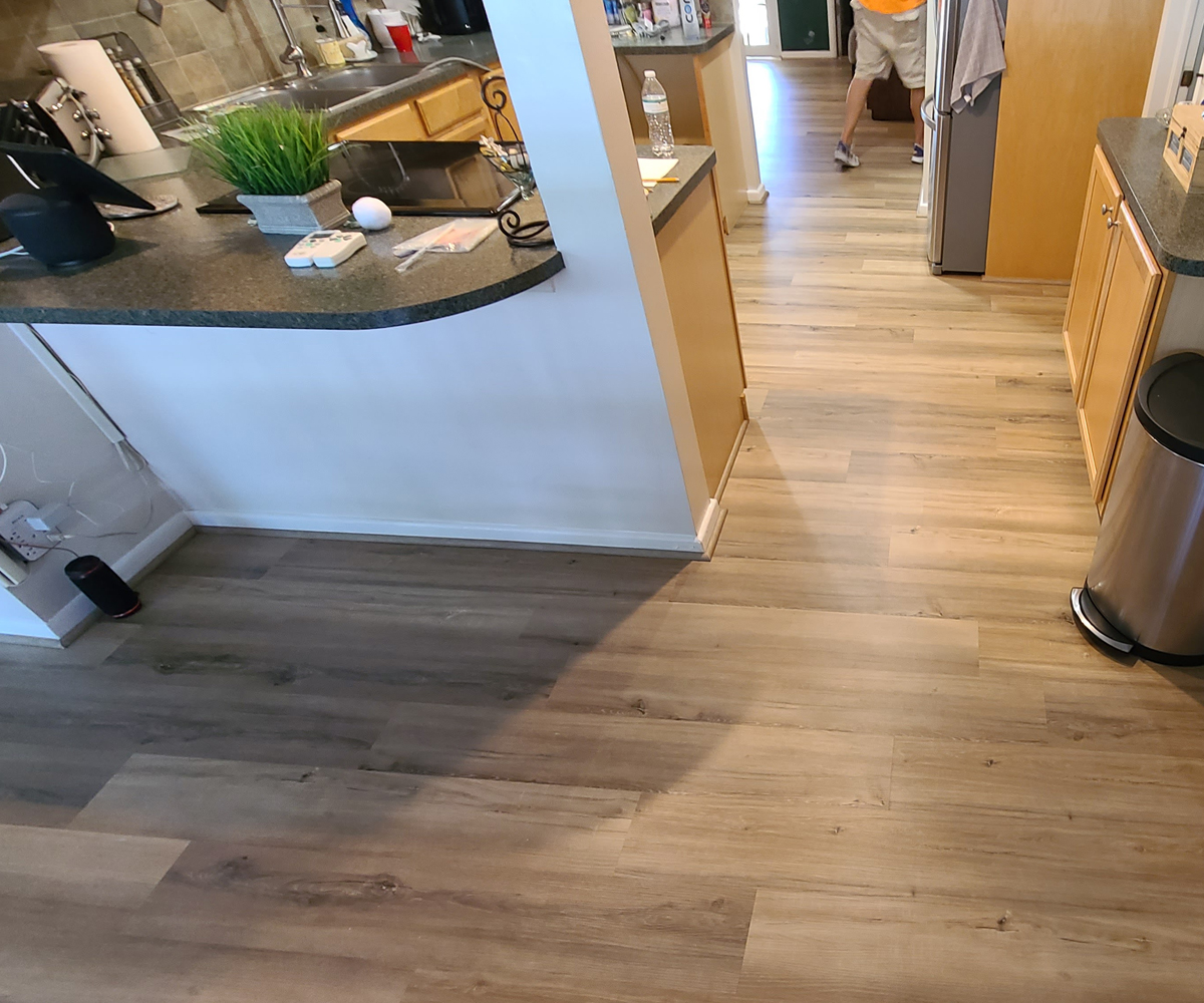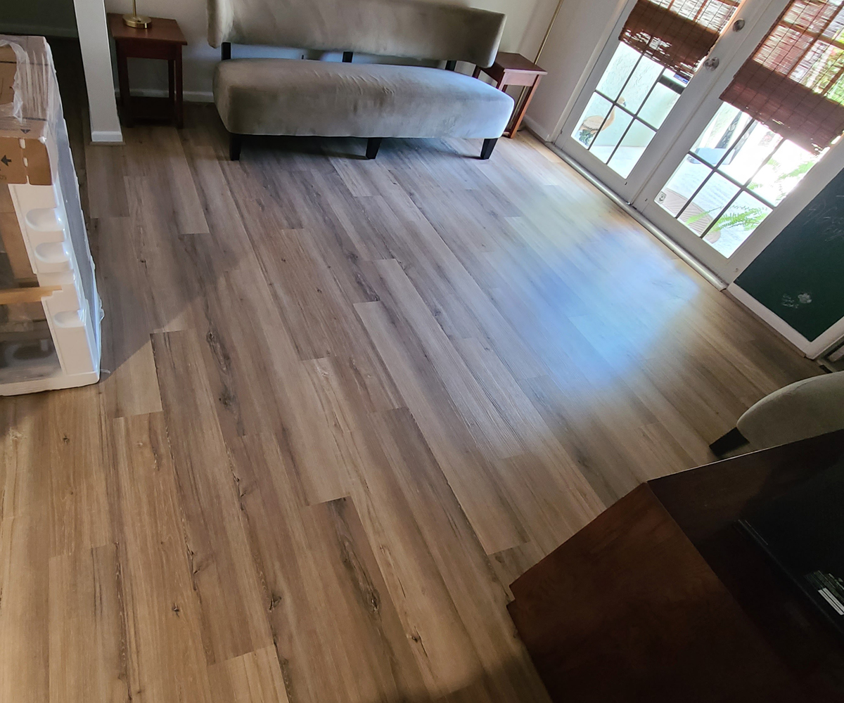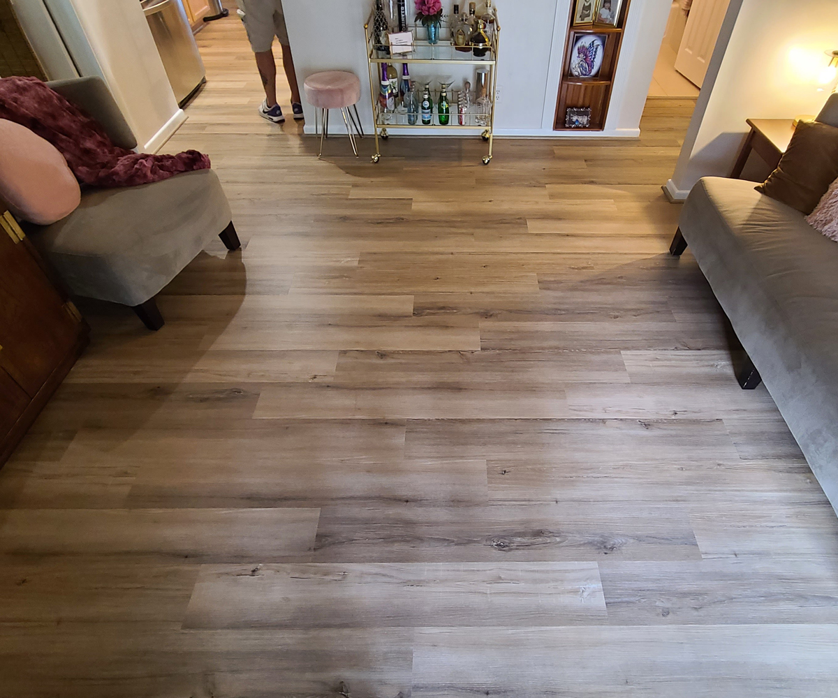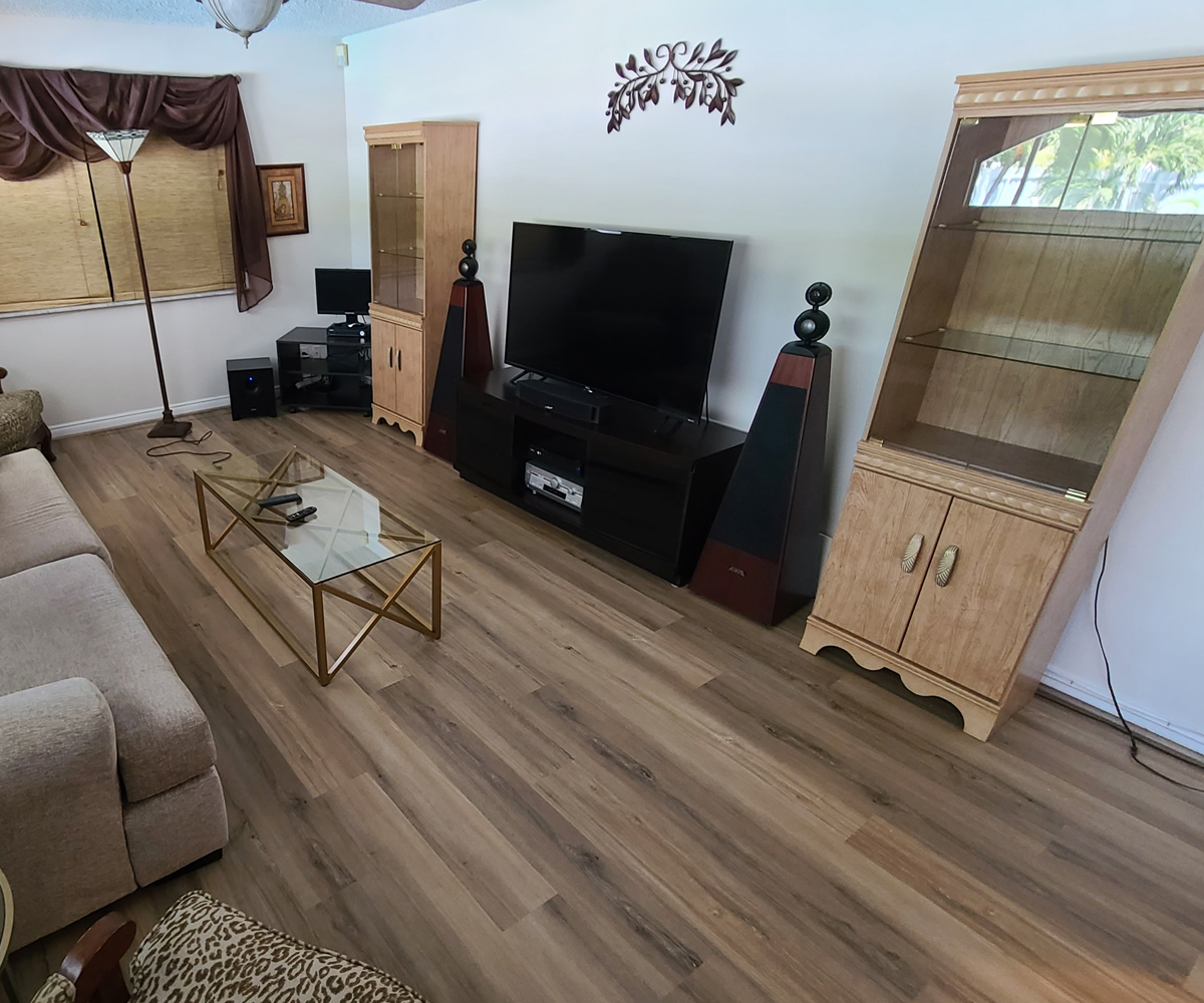 Luxury vinyl plank vinyl installed in East Lake Worth, Florida. The home was over 50 years old and it showed in the floor. Our client was able to maintain residency, and witness a rapid transformation in under 5 days