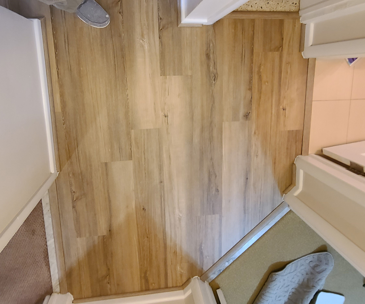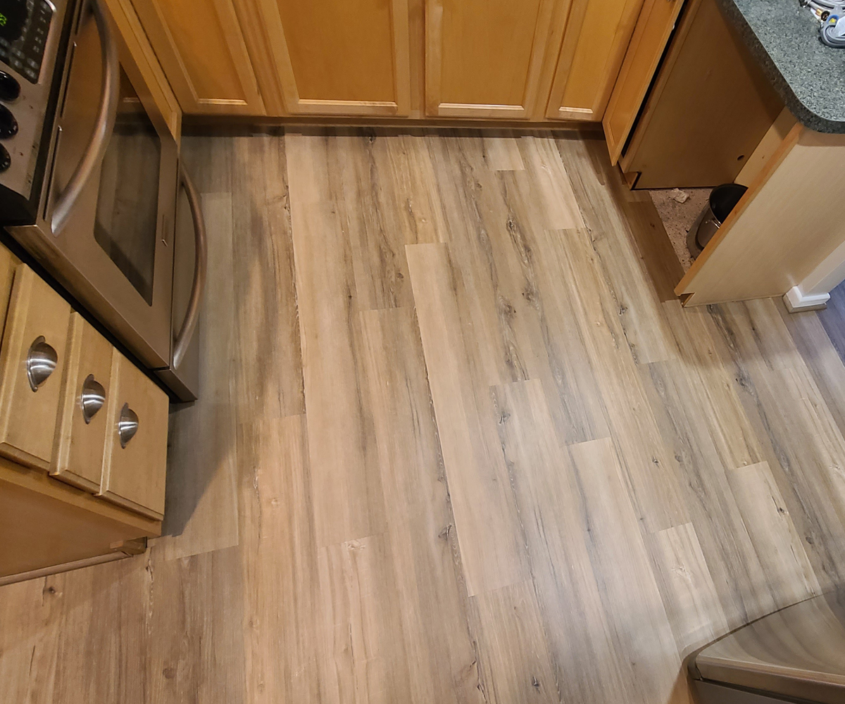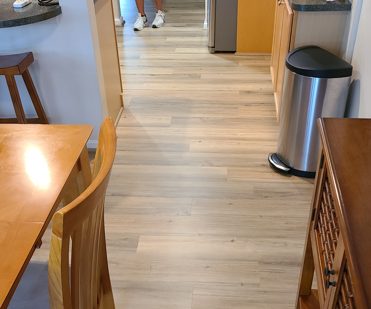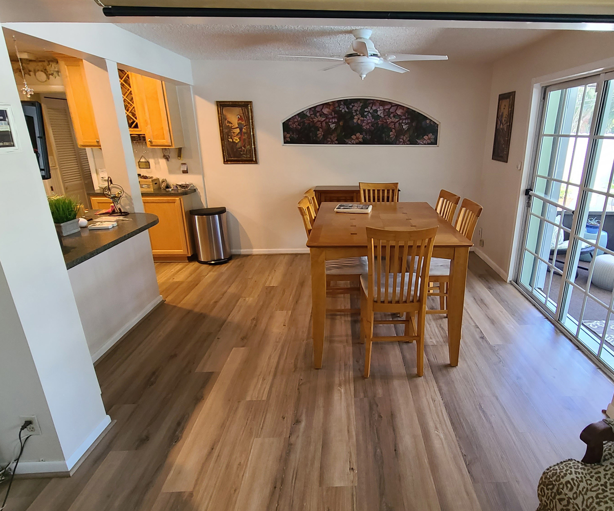 Luxury vinyl plank vinyl installed in East Lake Worth, Florida. The home was over 50 years old and it showed in the floor. Our client was able to maintain residency, and witness a rapid transformation in under 5 days